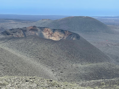 Durante el trayecto se pueden observar los diferentes tipos de lavas "aa" (malpaises) y "pahoehoe" que son lisas y cortadas. También el autocar se detendrá ante uno de los hornitos más emblemáticos del Parque, el "Manto de la Virgen".