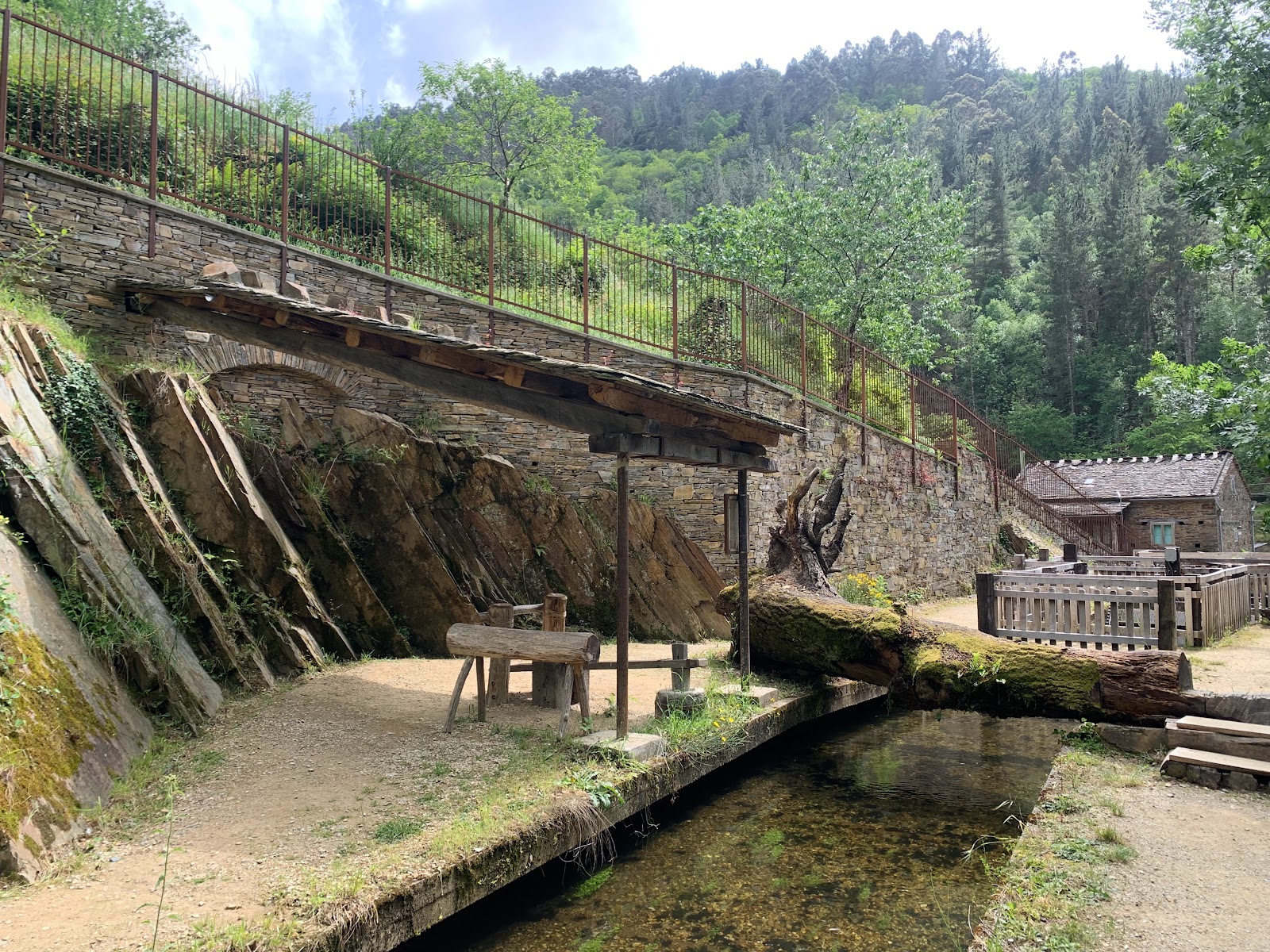 Cruzando el río por el acueducto se encuentra el molino de mazos, construido completamente en madera.